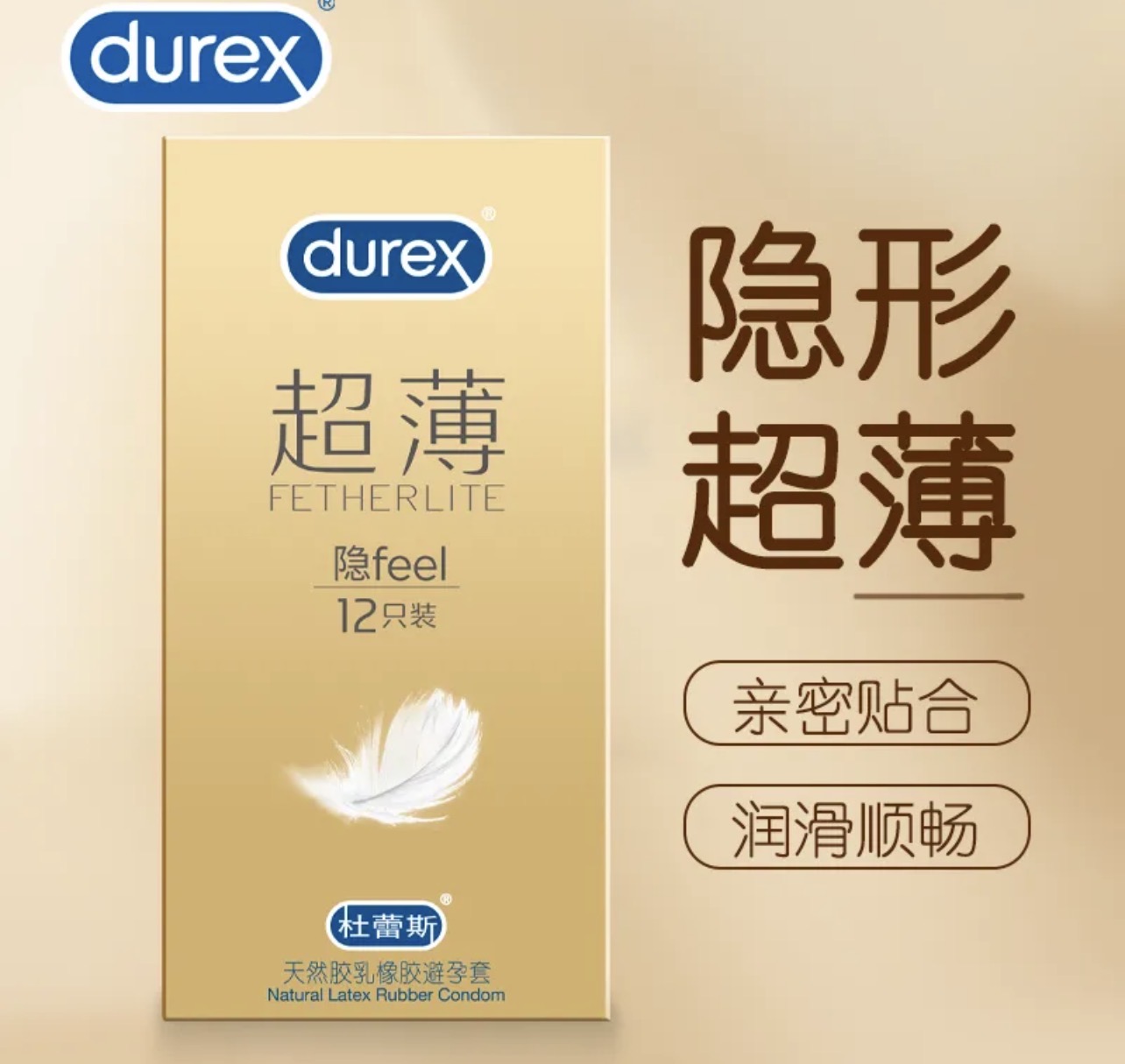 杜蕾斯 超薄隐feel天然乳胶避孕套安全套 成人计生用品 12只/盒